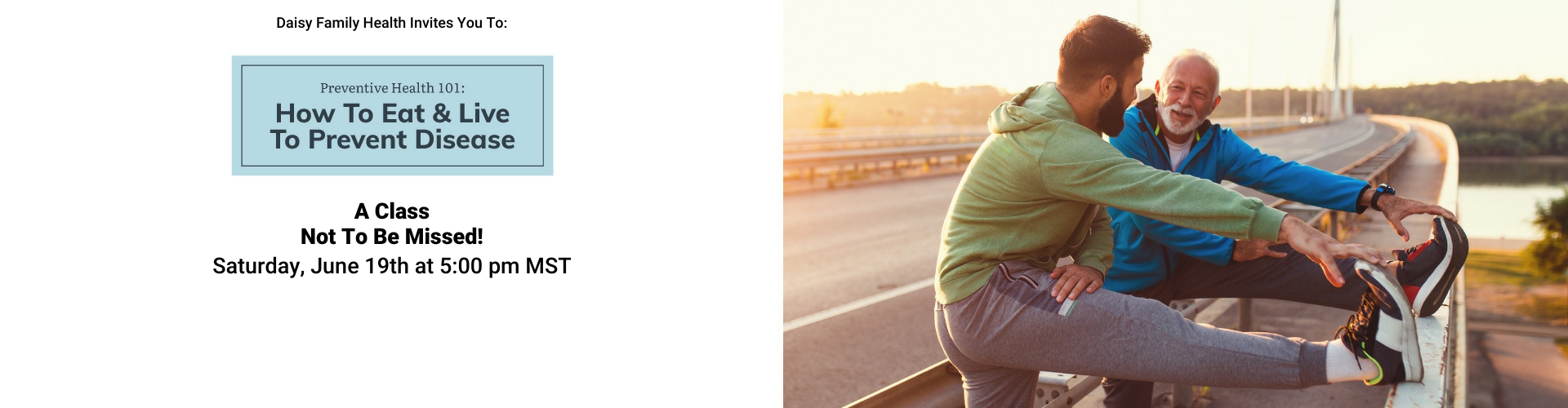 If you’d like to understand why we often struggle with unhealthy lifestyle choices, and which ones are worth changing today, join us for Preventive Health 101: How to Eat and Live to Prevent Disease on Saturday, June 19th at 5:00 pm MST.